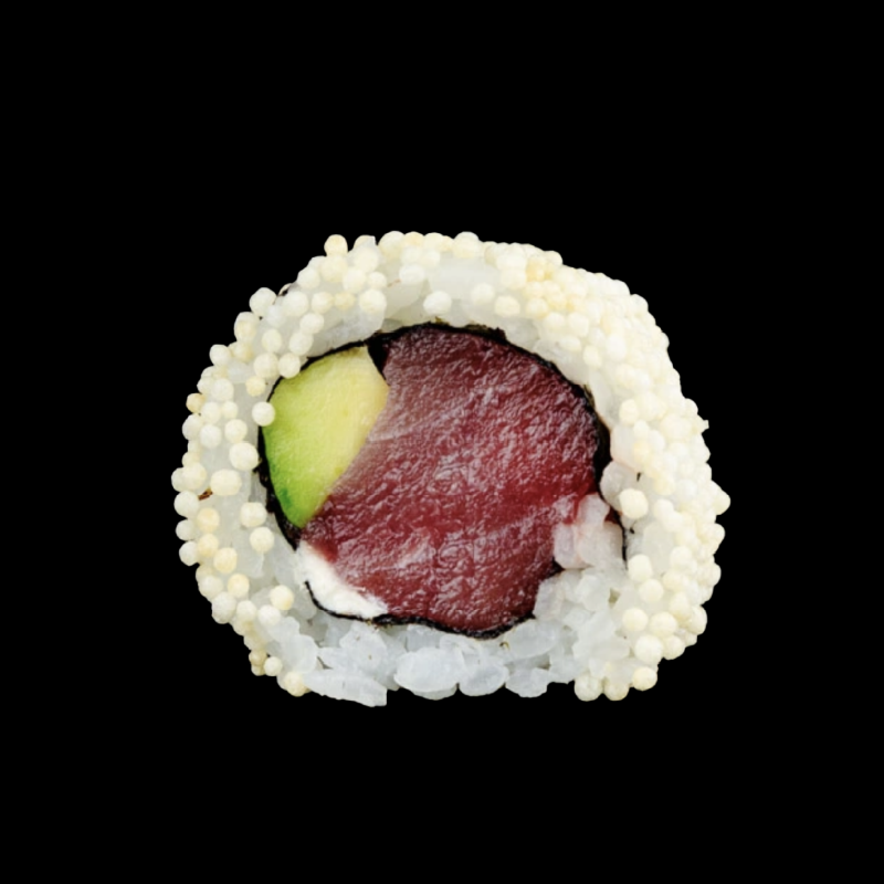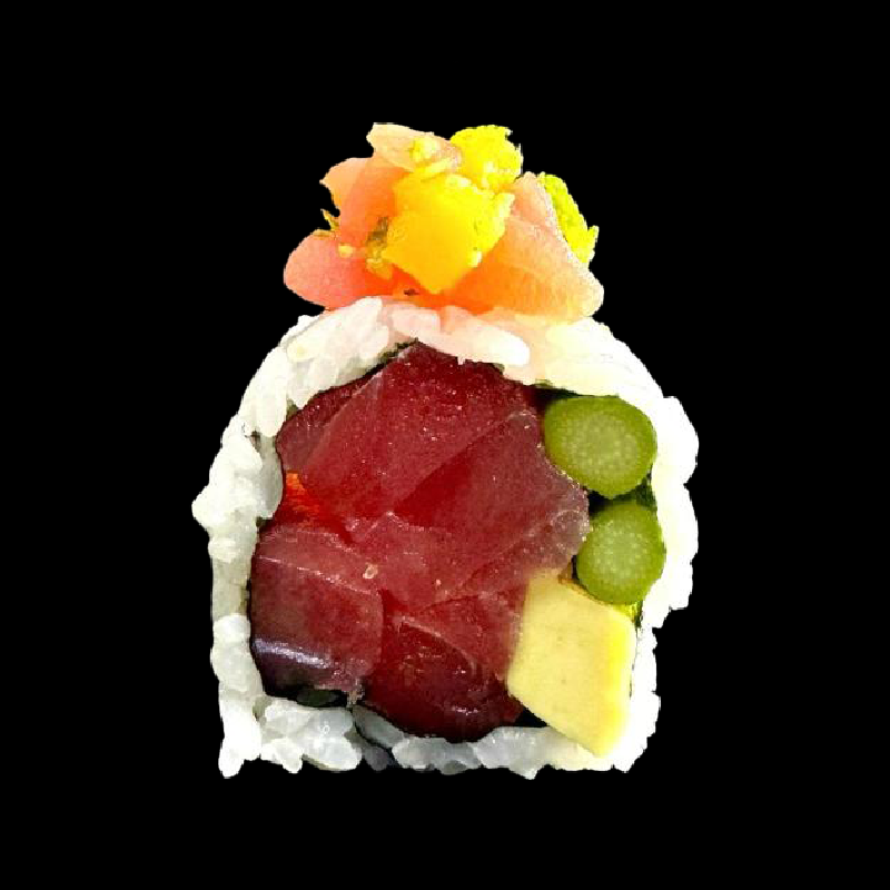 Tonno, erba cipollina, avocado, masago arare e maio giapponese