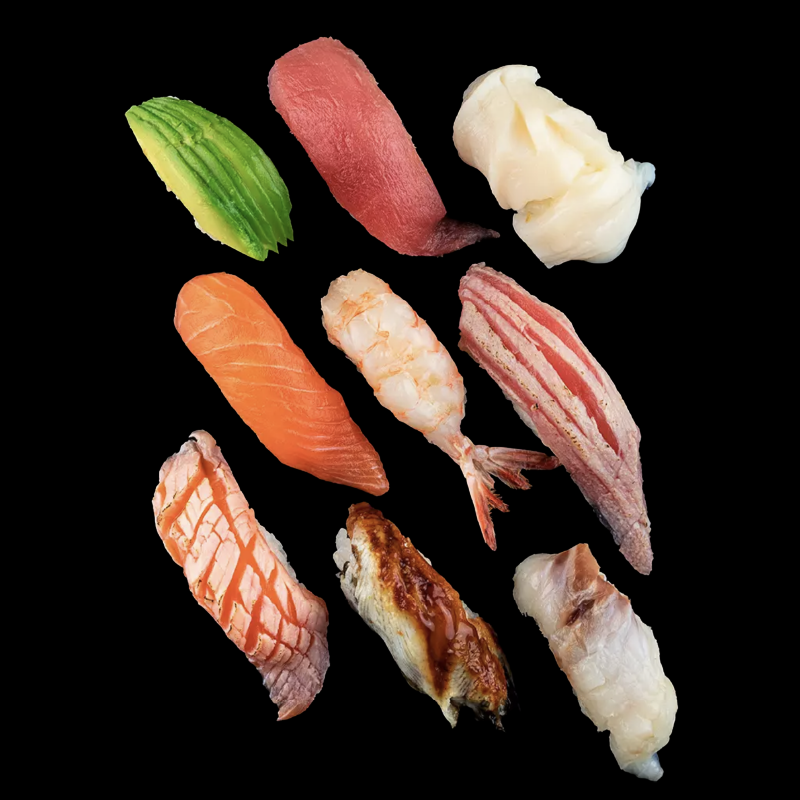 3 nigiri classici, 3 nigiri special, 7 fettine di sashimi, 2 gunkan, 10 hosomaki (tutto a scelta dello chef)