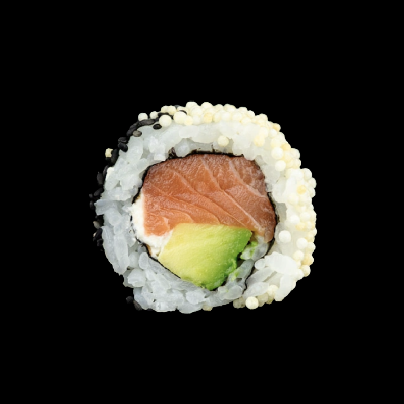 Salmone, avocado e Philadelphia, con topping di spezie mix e maio giapponese