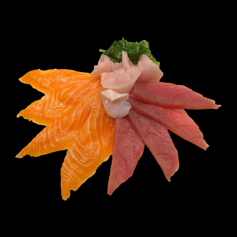 3 nigiri al salmone a scelta dello chef, 3 fettine di sashimi di salmone, 1 sake roll (8 pezzi), 1 hosomaki salmone (10 pezzi)
